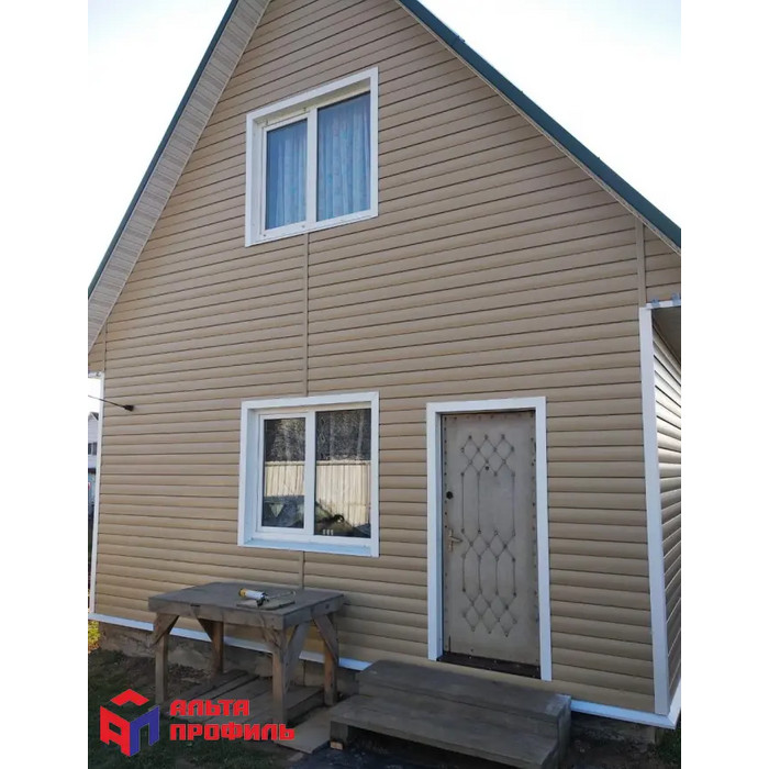 Виниловый сайдинг Альта-Профиль БЛОКХАУС Бежевый 3100x226x1.1 – это современный и стильный материал для облицовки фасадов, который сочетает в себе эстетику натурального дерева и практичность винила. Этот сайдинг имитирует текстуру и внешний вид бревенчатого дома, придавая вашему жилищу уютный и теплый вид. Панели выполнены в приятном бежевом цвете, который легко вписывается в любой архитектурный стиль и гармонично сочетается с окружающим ландшафтом.