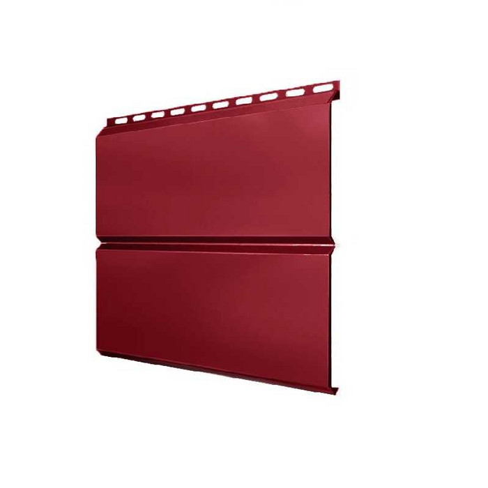 Металлический сайдинг Grand Line ЭкоБрус 0.45 мм PE с пленкой RAL 3003 рубиново-красный представляет собой современный и надежный материал для облицовки фасадов зданий. Этот сайдинг изготовлен из высококачественной стали толщиной 0.45 мм, что обеспечивает ему долговечность и устойчивость к различным атмосферным воздействиям. Покрытие PE (полиэстер) защищает металл от коррозии и ультрафиолетовых лучей, а защитная пленка RAL 3003 рубиново-красного цвета придает изделию эстетичный вид и дополнительную защиту во время транспортировки и монтажа.