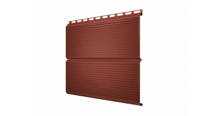 Металлический сайдинг Grand Line ЭкоБрус 0.45 мм Gofr Drap с пленкой RAL 8004 терракота представляет собой современный и надежный материал для облицовки фасадов зданий. Этот сайдинг изготовлен из высококачественной стали толщиной 0.45 мм, что обеспечивает ему долговечность и устойчивость к различным атмосферным воздействиям. Покрытие Gofr Drap придает материалу уникальный рельеф, имитирующий натуральное дерево, а защитная пленка RAL 8004 в цвете терракота не только улучшает эстетические качества, но и защищает от коррозии и выцветания.