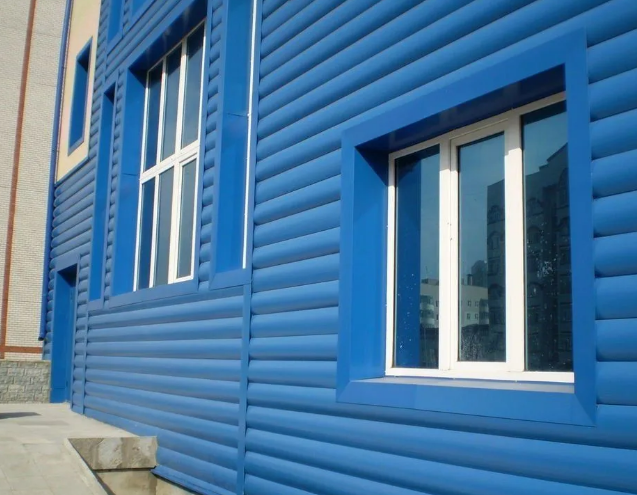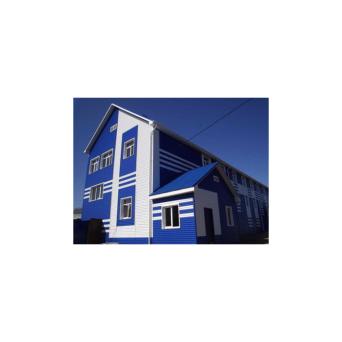 Металлический сайдинг Grand Line ЭкоБрус 0.45 мм Gofr PE RAL 5005 сигнальный синий – это современный и надежный материал для облицовки фасадов зданий. Он представляет собой панели из высококачественной стали с полимерным покрытием, имитирующим текстуру дерева. Толщина стали составляет 0.45 мм, что обеспечивает прочность и долговечность конструкции. Цвет RAL 5005 сигнальный синий придает фасаду яркий и выразительный вид, который не только украшает здание, но и защищает его от атмосферных воздействий.
