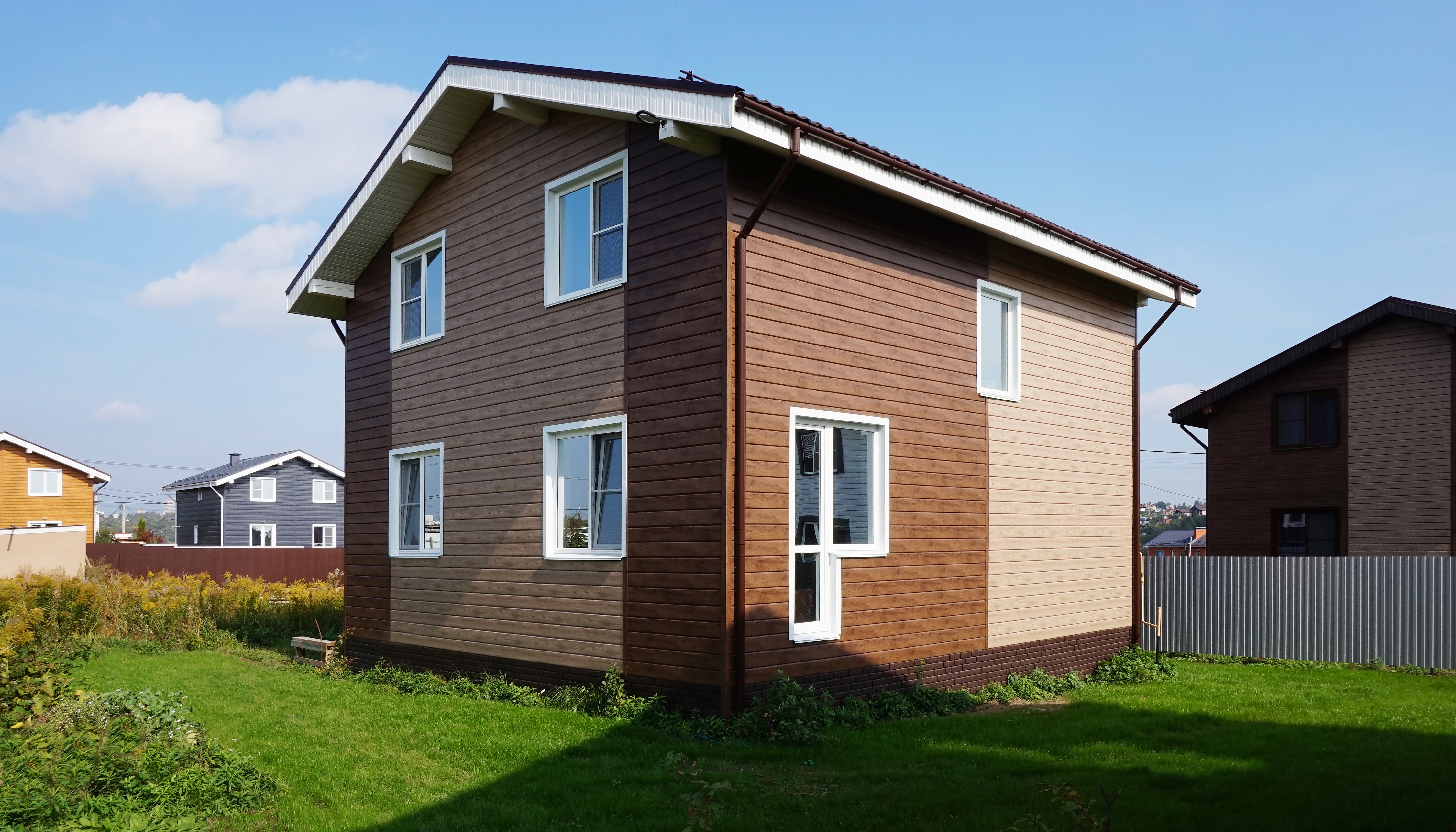 Металлический сайдинг Grand Line ЭкоБрус находит широкое применение в различных сферах строительства. Он идеально подходит для облицовки жилых домов, дачных коттеджей, административных и коммерческих зданий. Благодаря своей универсальности и простоте монтажа, этот сайдинг может использоваться как для новых построек, так и для реконструкции старых зданий. Его можно применять в любых климатических условиях, что делает его отличным выбором для регионов с суровыми погодными условиями.