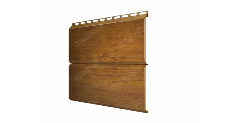 Металлический сайдинг Grand Line ЭкоБрус 0.45 мм Print Elite с пленкой Golden Wood представляет собой современный и долговечный материал для облицовки фасадов зданий. Этот сайдинг изготовлен из высококачественной стали толщиной 0.45 мм, что обеспечивает ему устойчивость к механическим повреждениям и атмосферным воздействиям. Покрытие Print Elite с пленкой Golden Wood придает материалу не только эстетичный вид, имитирующий натуральное дерево, но и дополнительную защиту от коррозии и ультрафиолетовых лучей.