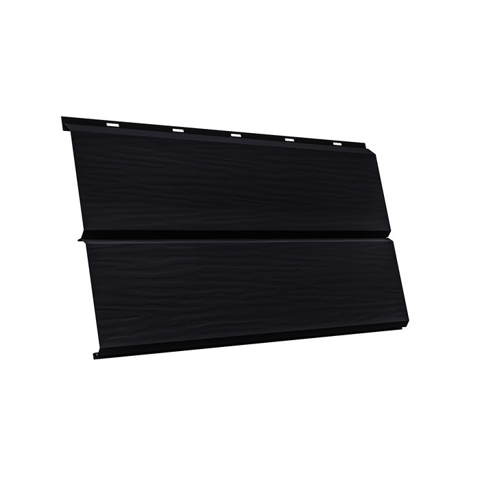 Металлический сайдинг Grand Line ЭкоБрус 0.45 мм 3D Drap ST RAL 9005 черный – это современный и надежный материал для облицовки фасадов зданий. Он представляет собой панели из высококачественной стали с полимерным покрытием, имитирующим текстуру дерева. Толщина стали составляет 0.45 мм, что обеспечивает прочность и долговечность конструкции. Цвет RAL 9005 черный придает фасаду элегантный и стильный вид, а технология 3D Drap ST позволяет добиться реалистичного эффекта древесины.