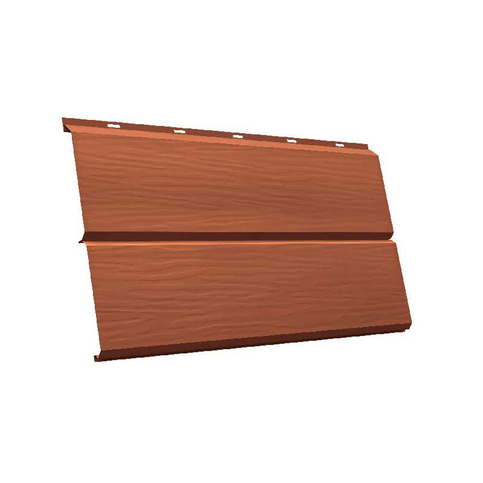Металлический сайдинг Grand Line ЭкоБрус 3D 0.5 мм Velur RAL 8004 терракота представляет собой современный и долговечный материал для облицовки фасадов зданий. Этот сайдинг изготовлен из высококачественной стали толщиной 0.5 мм, что обеспечивает ему устойчивость к механическим повреждениям и атмосферным воздействиям. Покрытие Velur придает материалу не только привлекательный внешний вид, но и дополнительную защиту от коррозии и выцветания. Цвет терракота (RAL 8004) добавляет фасаду теплых и уютных оттенков, что делает его идеальным выбором для различных архитектурных стилей.