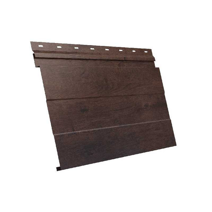 Металлический сайдинг Grand Line Фасадная панель 0.45 мм Print Elite с пленкой Antique Wood представляет собой инновационное решение для облицовки фасадов зданий. Этот материал сочетает в себе прочность металла и эстетику натурального дерева, благодаря уникальной технологии нанесения пленки Antique Wood. Панели имеют толщину 0.45 мм, что обеспечивает им высокую устойчивость к механическим повреждениям и атмосферным воздействиям. Дизайн панелей имитирует текстуру и цвет древесины, что позволяет создать уютную и стильную атмосферу вокруг вашего дома.