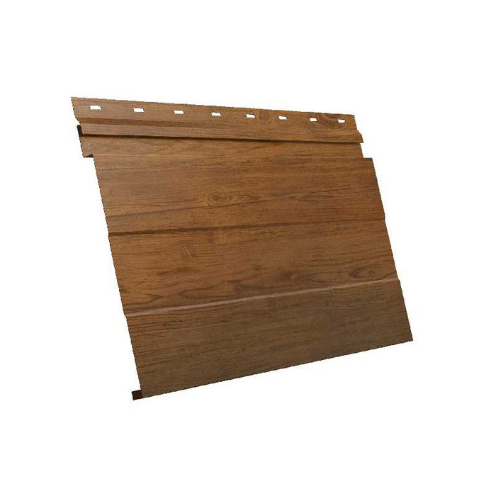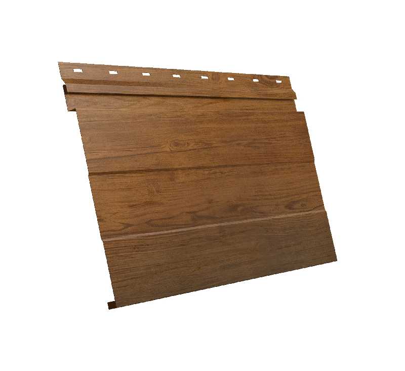 Металлический сайдинг Grand Line Фасадная панель 0.45 мм Print Elite с пленкой Golden Wood представляет собой высококачественный материал для облицовки фасадов зданий. Этот продукт сочетает в себе прочность металла и эстетичность дерева, благодаря уникальной технологии нанесения пленки Golden Wood. Панели имеют толщину 0.45 мм, что обеспечивает им долговечность и устойчивость к различным погодным условиям. Дизайн панелей имитирует натуральное дерево, что позволяет создать уютный и стильный внешний вид здания.