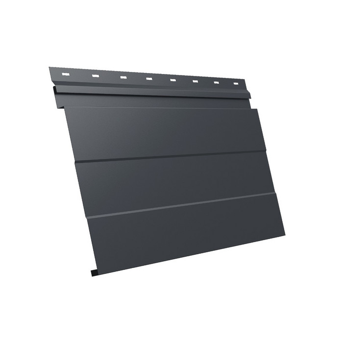 Металлический сайдинг Grand Line представляет собой современный и надежный материал для облицовки фасадов зданий. Изготовленный из высококачественной стали толщиной 0.5 мм, он покрыт специальным полимерным составом Velur, который придает ему не только привлекательный внешний вид, но и обеспечивает долговечность и устойчивость к атмосферным воздействиям. Цвет RAL 7024 "мокрый асфальт" добавляет элегантности и стильности любому строению, делая его выразительным и современным.