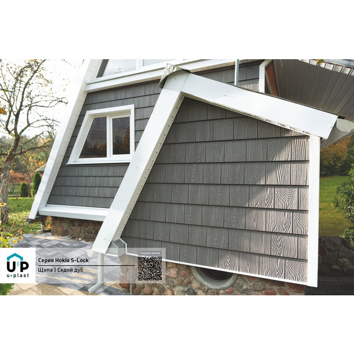 Фасадная панель Ю-пласт Хохла S-Lock Щепа Седой дуб представляет собой инновационное решение для облицовки зданий, сочетающее в себе эстетику натурального дерева и долговечность современных материалов. Эта панель изготовлена из высококачественного пластика, который устойчив к воздействию ультрафиолетовых лучей, влаги и перепадов температур. Благодаря своей уникальной текстуре, имитирующей щепу седого дуба, панель придает фасаду здания благородный и стильный вид, сохраняя при этом все преимущества искусственного материала.