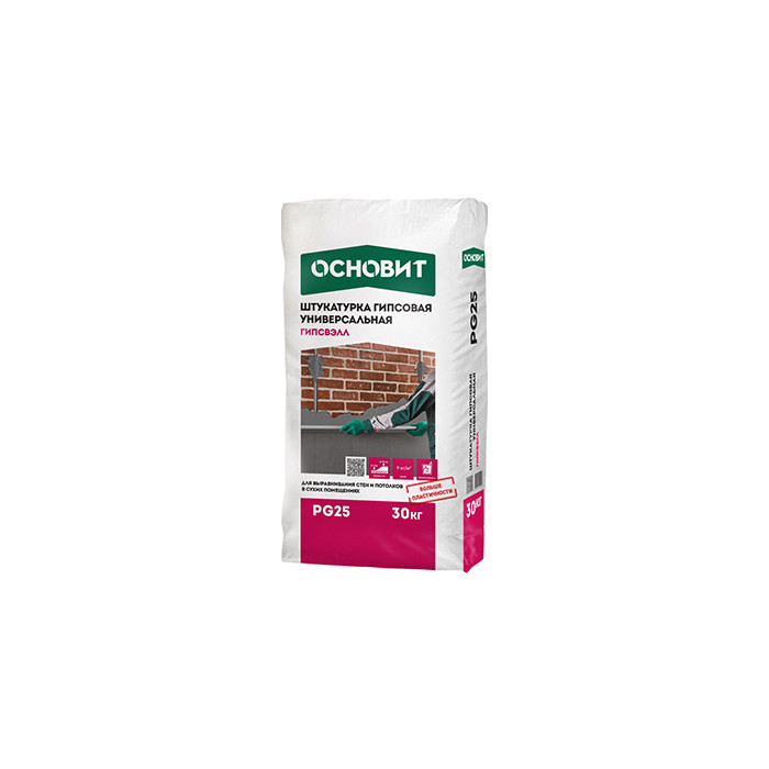 Гипсовая штукатурка универсальная – это современный строительный материал, который широко используется для выравнивания стен и потолков. Она представляет собой сухую смесь на основе гипса, которая после смешивания с водой образует пластичный раствор. Этот раствор легко наносится на поверхность и быстро сохнет, что позволяет значительно ускорить процесс ремонта. Основит ГИПСВЭЛЛ PG25 30 кг – это продукт, который сочетает в себе высокое качество и удобство в использовании, что делает его популярным среди профессионалов и домашних мастеров.