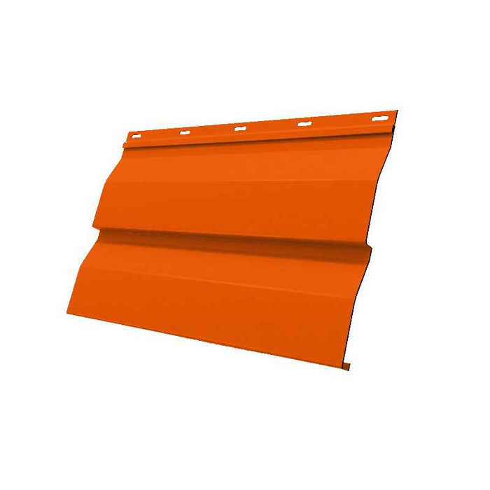 Металлический сайдинг – это современный и долговечный материал для облицовки фасадов зданий. Он представляет собой панели из тонколистовой стали с полимерным покрытием, которые имитируют различные текстуры, в данном случае – корабельную доску. Толщина металла составляет 0.45 мм, а покрытие выполнено из полиэстера (PE) в ярком оранжевом цвете RAL 2004. Этот материал не только придает зданию эстетичный вид, но и защищает его от атмосферных воздействий, таких как дождь, снег и ультрафиолетовое излучение.