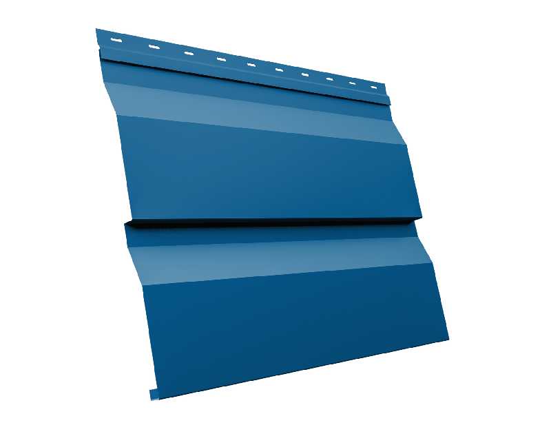 Металлический сайдинг – это современный и долговечный материал для облицовки фасадов, который сочетает в себе эстетичность и практичность. Представленный продукт – это сайдинг Grand Line серии Корабельная Доска XL толщиной 0.45 мм, покрытый полиэстером (PE) в сигнальном синем цвете (RAL 5005). Этот сайдинг отличается высокой прочностью и устойчивостью к атмосферным воздействиям, что делает его идеальным выбором для облицовки зданий в различных климатических условиях.