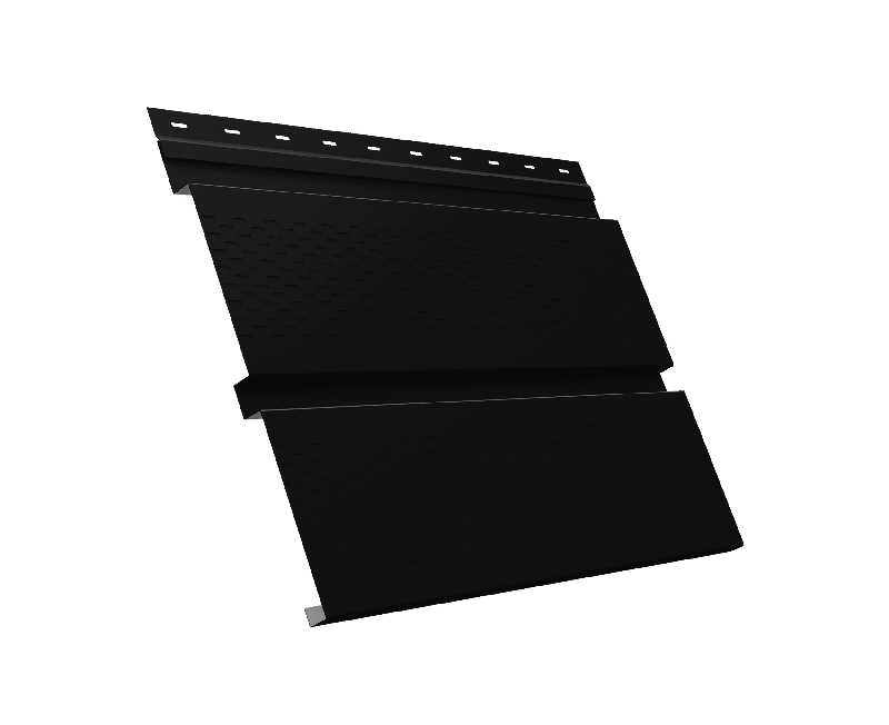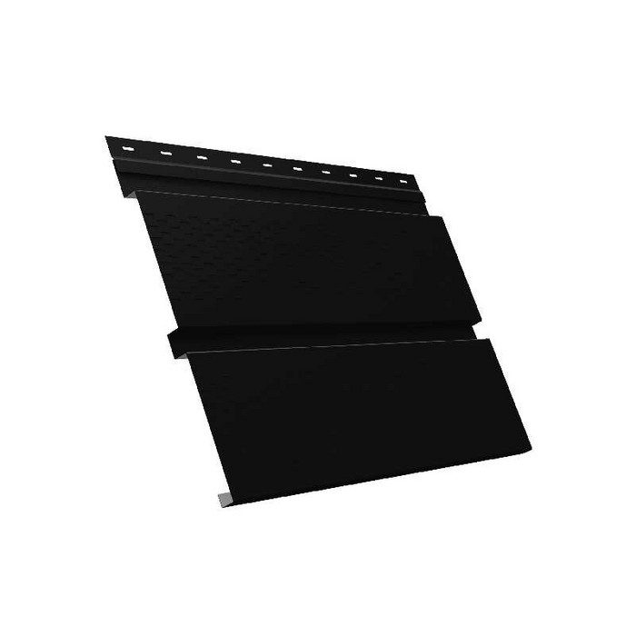 Металлический софит Квадро брус с перфорацией 0,5 PurLite Мatt RAL9005 черный – это современный и функциональный материал, предназначенный для облицовки карнизных свесов и подшивки кровли. Изготовленный из высококачественной стали с полимерным покрытием PurLite Matt, этот софит отличается не только эстетичным внешним видом, но и высокой прочностью и долговечностью. Черный цвет RAL9005 придает изделию элегантность и универсальность, позволяя легко вписать его в любой архитектурный стиль.