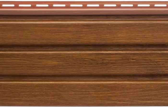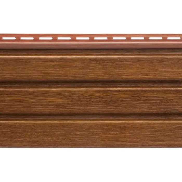 Планка софит дуб золотистый Т-19 - 3м представляет собой высококачественный отделочный материал, предназначенный для облицовки карнизных свесов и подшивки кровли. Изготовленная из прочного и долговечного ПВХ, эта планка отличается устойчивостью к атмосферным воздействиям, что делает ее идеальным выбором для наружных работ. Ее золотистый цвет, имитирующий натуральный дуб, придает фасаду дома элегантный и благородный вид, гармонично сочетаясь с различными архитектурными стилями.