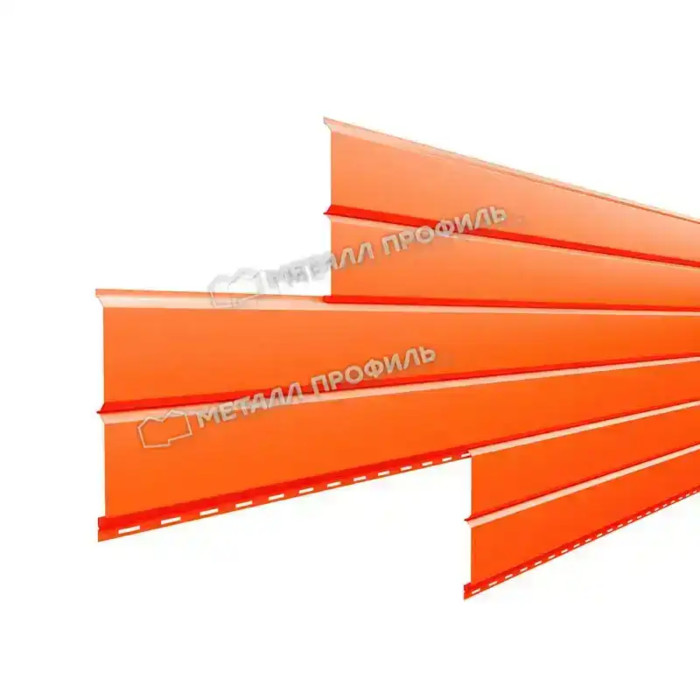 Металлический сайдинг Lбрус Металл-Профиль NormanMP RAL 2004 Чистый оранжевый 15х240 – это современный и надежный материал для облицовки фасадов зданий. Он представляет собой панели из высококачественной оцинкованной стали, покрытые полимерным слоем, который обеспечивает долговечность и устойчивость к атмосферным воздействиям. Цвет Чистый оранжевый (RAL 2004) придает фасаду яркость и выразительность, делая его не только функциональным, но и эстетически привлекательным.