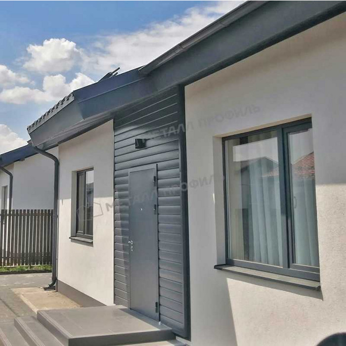 Металлический сайдинг Lбрус Металл-Профиль NormanMP RAL 7024 Серый графит 15х240 представляет собой современный и надежный материал для облицовки фасадов зданий. Этот сайдинг изготовлен из высококачественной оцинкованной стали с полимерным покрытием, что обеспечивает ему долговечность и устойчивость к различным атмосферным воздействиям. Цвет Серый графит (RAL 7024) придает фасаду элегантный и современный вид, гармонично вписываясь в любой архитектурный стиль.