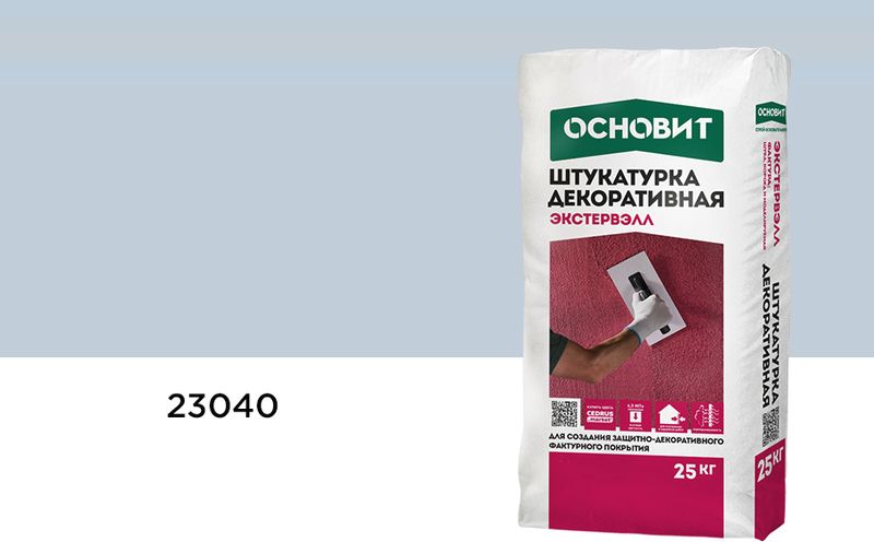Штукатурка декоративная ОСНОВИТ КОРОЕД ЭКСТЕРВЭЛЛ OM-2.5 WK, 23040, 2,5 мм, 25 кг представляет собой высококачественный материал для отделки фасадов и внутренних помещений. Эта штукатурка отличается уникальной текстурой "короед", которая создает на поверхности характерные бороздки, придающие стенам эстетичный и стильный вид. Продукт упакован в удобные мешки по 25 кг, что облегчает его транспортировку и хранение. Размер зерна составляет 2,5 мм, что позволяет создавать выразительные и долговечные покрытия.