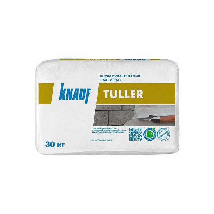 Штукатурка гипсовая эластичная КНАУФ-ТУЛЛЕР 30 кг представляет собой высококачественный строительный материал, предназначенный для выравнивания стен и потолков. Она изготовлена на основе гипса с добавлением специальных модификаторов, которые придают ей уникальные свойства. Эта штукатурка легко наносится, быстро сохнет и обеспечивает идеально гладкую поверхность, готовую к финишной отделке.