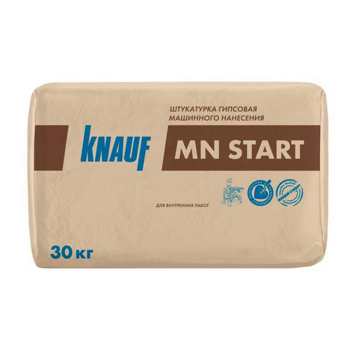 Штукатурка гипсовая КНАУФ-МН СТАРТ 30 кг – это высококачественный строительный материал, предназначенный для выравнивания стен и потолков внутри помещений. Она представляет собой сухую смесь на основе гипса, которая после смешивания с водой образует пластичный раствор, легко наносимый на поверхность. Эта штукатурка отличается высокой адгезией, что обеспечивает надежное сцепление с основанием, а также быстрым временем высыхания, что позволяет ускорить процесс ремонта.