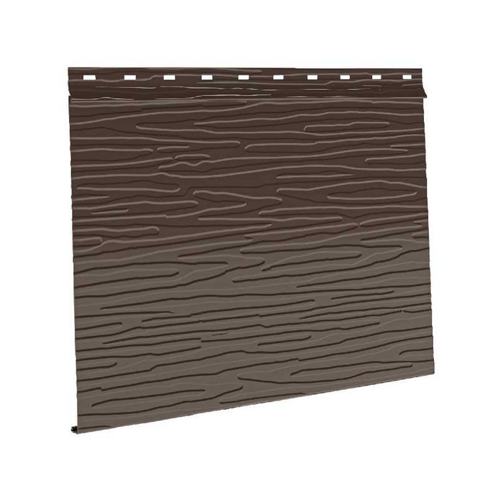 Сайдинг металлический AquAsystem Скандинавская доска широкая фактурная Polyester 0,6mm (0,63mm с покрытием) Zn275 в цвете тёмно-коричневый (RR 32) представляет собой современный и надёжный материал для облицовки фасадов зданий. Этот сайдинг изготовлен из высококачественной стали с цинковым покрытием Zn275, что обеспечивает ему долговечность и устойчивость к коррозии. Поверхность сайдинга покрыта полиэстером, который защищает материал от ультрафиолетовых лучей и атмосферных воздействий, сохраняя его первоначальный вид на долгие годы. Широкая фактурная доска имитирует натуральное дерево, придавая фасаду эстетичный и уютный вид.