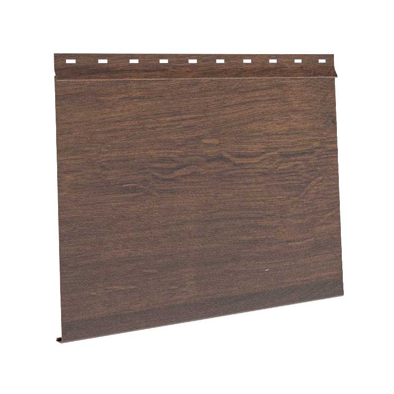 Сайдинг металлический AquAsystem Скандинавская доска широкая Polyester 0,6mm (0,63mm с покрытием) Zn275 Канадский дуб представляет собой современный и долговечный материал для облицовки фасадов зданий. Этот сайдинг изготовлен из высококачественной стали с толщиной 0,6 мм, которая после нанесения полиэстерного покрытия достигает 0,63 мм. Покрытие Zn275 обеспечивает надежную защиту от коррозии, что делает этот сайдинг идеальным выбором для различных климатических условий. Цвет Канадский дуб придает фасаду элегантный и благородный вид, гармонично вписываясь в любой архитектурный стиль.