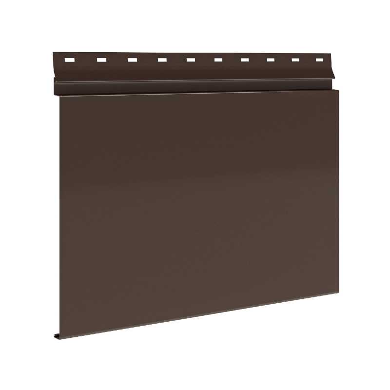 Сайдинг металлический AquAsystem Скандинавский брус Модерн широкий GreenCoat Pural BT Тёмно-коричневый (RR 32) представляет собой современный и долговечный материал для облицовки фасадов зданий. Этот сайдинг изготовлен из высококачественной стали с защитным покрытием GreenCoat Pural BT, что обеспечивает ему устойчивость к коррозии, ультрафиолетовому излучению и атмосферным воздействиям. Тёмно-коричневый цвет (RR 32) придаёт фасаду элегантный и стильный вид, а широкий профиль "Скандинавский брус Модерн" добавляет архитектурной выразительности.