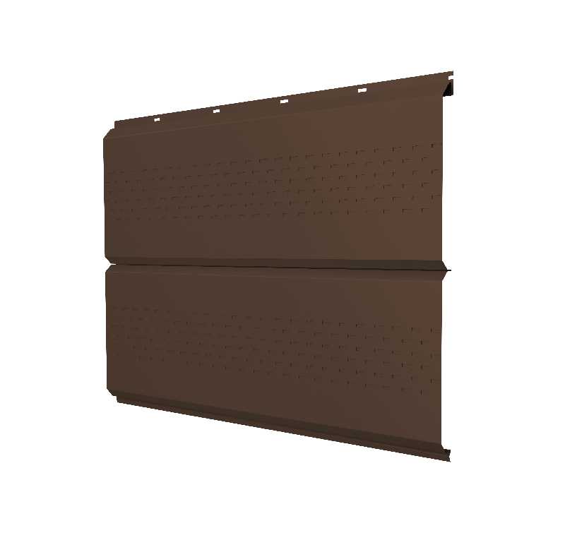 Софит ЭкоБрус new без перфорации 0,45 Lite PE RAL8017 шоколад – это современный и стильный материал для облицовки подвесных потолков и карнизов. Изготовленный из высококачественной стали с полимерным покрытием, этот софит отличается долговечностью и устойчивостью к атмосферным воздействиям. Цвет шоколад придает изделию элегантный вид, который легко вписывается в любой архитектурный стиль. Толщина стали 0,45 мм обеспечивает надежность и прочность конструкции, а отсутствие перфорации делает его идеальным для использования в помещениях, где требуется защита от влаги и пыли.