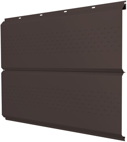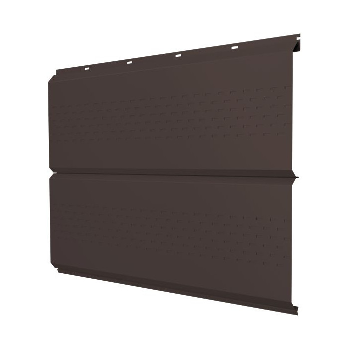 Софит ЭкоБрус с перфорацией 0,345 Grand Line 0,5 PurLite Matt RAL8017 шоколад – это современный и функциональный материал, предназначенный для обустройства подшивки карнизных и фронтонных свесов крыши. Изготовленный из высококачественной стали с полимерным покрытием PurLite Matt, этот софит отличается не только привлекательным внешним видом, но и высокой прочностью и долговечностью. Цвет шоколад (RAL8017) придает изделию элегантность и позволяет гармонично вписать его в любой архитектурный стиль. Перфорация 0,345 обеспечивает необходимую вентиляцию подкровельного пространства, что способствует продлению срока службы всей кровельной системы.