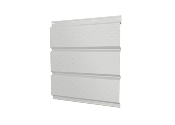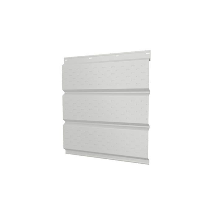 Софит ЭкоБрус с перфорацией 0,345 Grand Line 0,5 Velur с пленкой RAL9003 сигнальный белый – это современный и функциональный материал, предназначенный для облицовки подшивки карнизных и фронтонных свесов крыши. Изготовленный из высококачественной стали с полимерным покрытием Velur, этот софит отличается не только привлекательным внешним видом, но и высокой прочностью и долговечностью. Перфорация 0,345 обеспечивает необходимую вентиляцию подкровельного пространства, что способствует продлению срока службы всей кровельной системы. Пленка RAL9003 сигнальный белый придает изделию эстетичный вид и дополнительную защиту от коррозии.