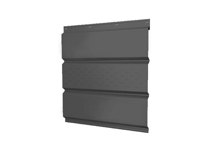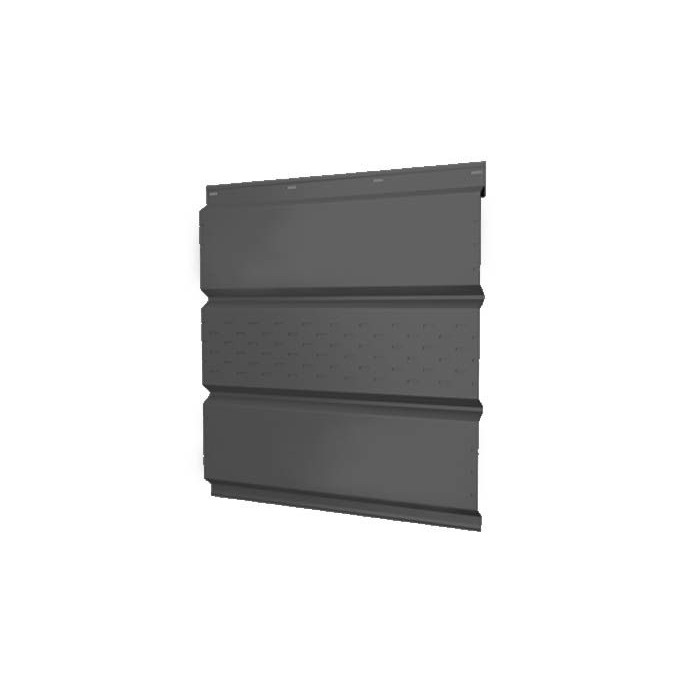 Софит металлический с центральной перфорацией 0,45 Drap ST RAL9005 черный – это современный и практичный материал, предназначенный для облицовки подшивки карнизов и фронтонов зданий. Изготовленный из высококачественной стали с полимерным покрытием, этот софит отличается долговечностью и устойчивостью к атмосферным воздействиям. Центральная перфорация обеспечивает вентиляцию подкровельного пространства, что способствует продлению срока службы кровельной системы в целом.