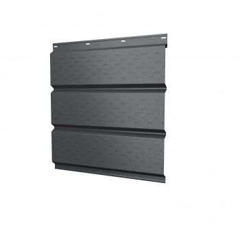 Софит металлический с центральной перфорацией и покрытием PurPro Matt 275 с пленкой RAL7024 мокрый асфальт представляет собой высококачественный строительный материал, предназначенный для облицовки подшивки карнизных свесов и вентилируемых фасадов. Этот софит изготовлен из прочной стали толщиной 0,5 мм, что обеспечивает ему долговечность и устойчивость к различным атмосферным воздействиям. Центральная перфорация позволяет обеспечить необходимую вентиляцию подкровельного пространства, что способствует продлению срока службы кровельной системы в целом. Покрытие PurPro Matt 275 не только придает софиту эстетичный внешний вид, но и защищает его от коррозии и ультрафиолетового излучения. Цвет RAL7024 мокрый асфальт добавляет изделию благородства и позволяет гармонично вписать его в любой архитектурный ансамбль.
