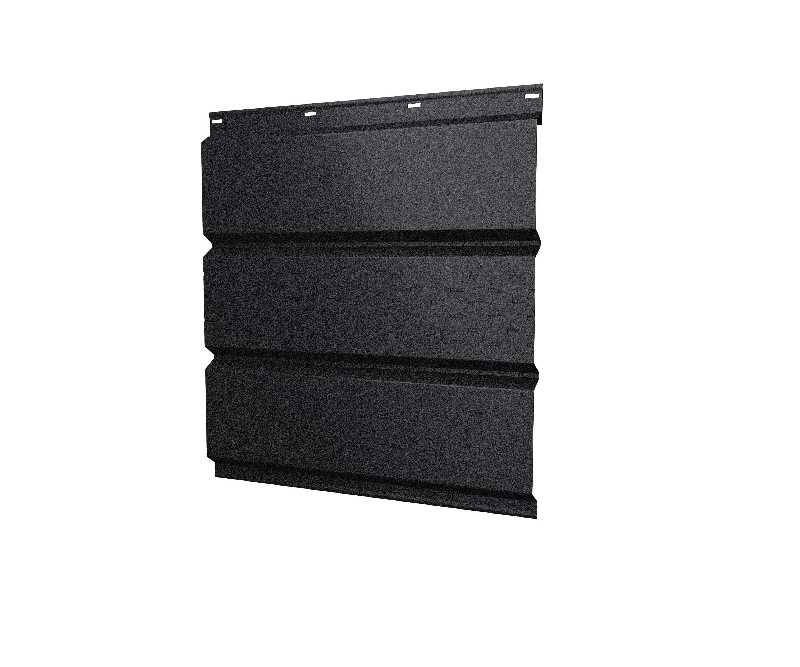 Софит металлический с центральной перфорацией 0,5 Quarzit lite, покрытый пленкой RAL9005 черного цвета, представляет собой высококачественный строительный материал, предназначенный для облицовки подшивки карнизных свесов и фронтонов зданий. Этот софит изготовлен из прочной стали толщиной 0,5 мм, что обеспечивает ему долговечность и устойчивость к различным атмосферным воздействиям. Центральная перфорация позволяет обеспечить вентиляцию подкровельного пространства, что способствует предотвращению образования конденсата и продлению срока службы кровельной системы. Покрытие Quarzit lite придает софиту дополнительную защиту от коррозии и ультрафиолетовых лучей, а пленка RAL9005 черного цвета придает ему элегантный и современный вид.