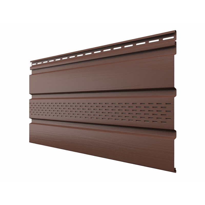 Софит Технониколь виниловый без перфорации 3М Каштан представляет собой высококачественный строительный материал, предназначенный для облицовки подшивки карнизных свесов и фронтонов зданий. Этот софит изготовлен из прочного винила, который устойчив к воздействию ультрафиолетовых лучей, влаги и перепадов температур. Цвет "Каштан" придает софиту элегантный и благородный вид, что позволяет ему гармонично вписываться в любой архитектурный стиль. Длина софита составляет 3 метра, что делает его удобным для монтажа и минимизирует количество стыков.