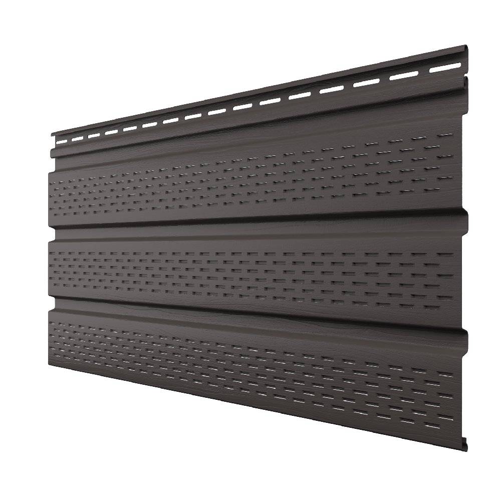 Софит виниловый ТехноНИКОЛЬ полностью перфорированный 3м (Темно-коричневый) 1 шт – это современный строительный материал, предназначенный для обустройства подшивки карнизных свесов и вентилируемых фасадов. Изготовленный из высококачественного винила, этот софит отличается долговечностью и устойчивостью к атмосферным воздействиям. Полностью перфорированная поверхность обеспечивает эффективную вентиляцию подкровельного пространства, что способствует продлению срока службы кровельной системы и предотвращению образования конденсата.