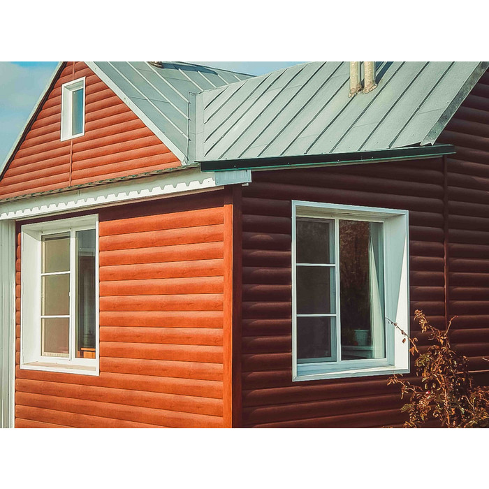 Металлический сайдинг – это современный и долговечный материал для облицовки фасадов, который сочетает в себе эстетичность и практичность. Представленный продукт, выполненный из стали толщиной 0.45 мм с полимерным покрытием PE и защитной пленкой, имеет текстуру "блок-хаус" и окрашен в теплый терракотовый цвет RAL 8004. Этот сайдинг не только придает зданию уникальный внешний вид, но и обеспечивает надежную защиту от атмосферных воздействий.